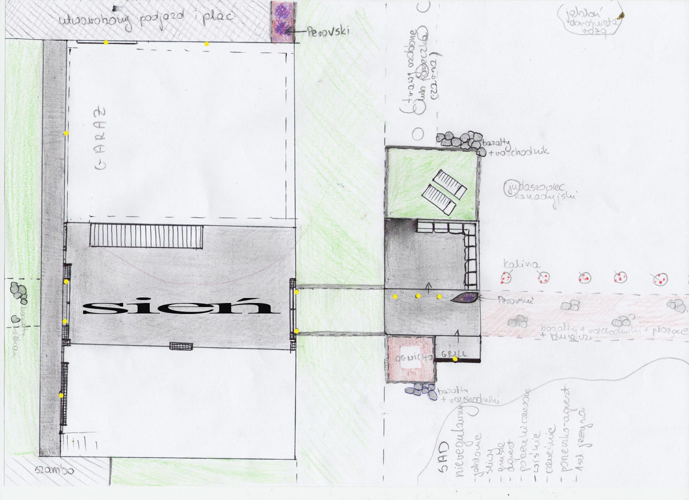 To pierwotnie, a teraz mam kilka innych pomysłów, także z niecnym wykorzystaniem studni, rowu i pompy w miejscu jabłoni, która tonęła w róży robiąc tam sadzawkę.